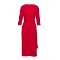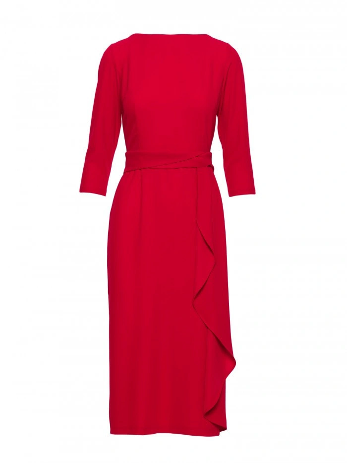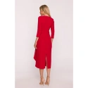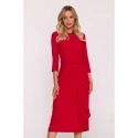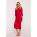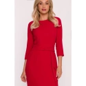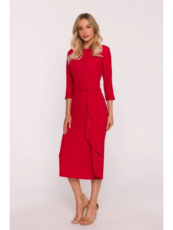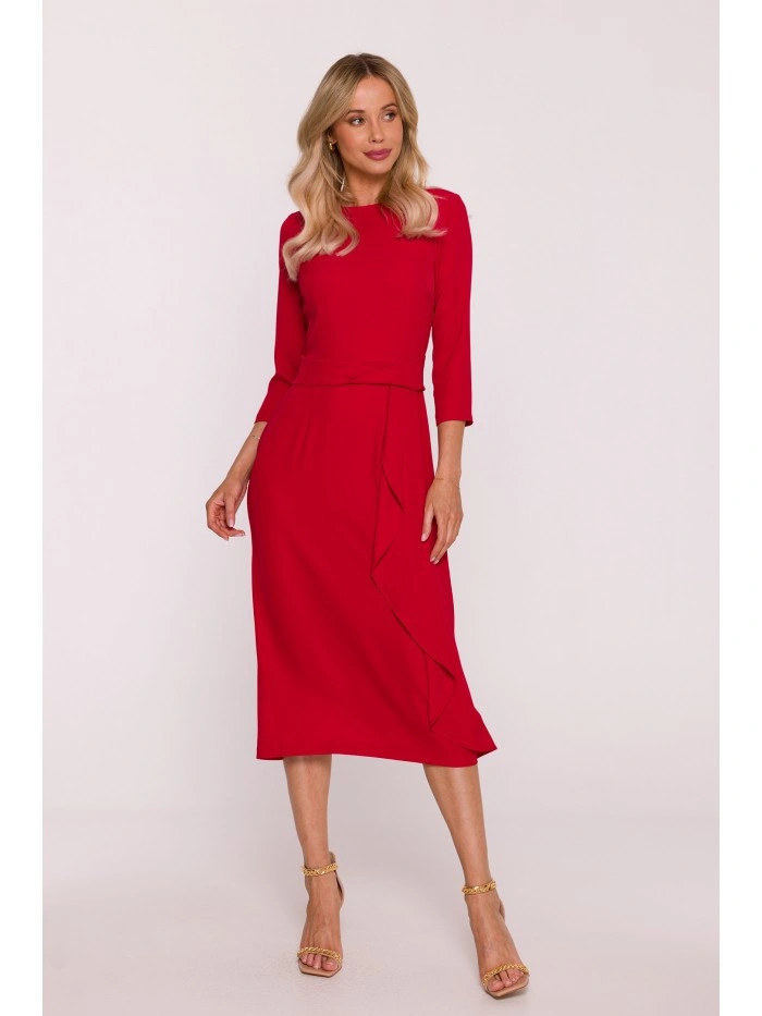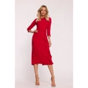 materiál: 95% polyester 5% elastan Tkanina: hladká tkanina s jemným leskom PODROBNOSTI O PRODUKTE Výstrih: okrúhly Rukávy: 3/4 dĺžka Sukňa: rovná, s ozdobným volánom pozdĺž bočnej línie sukne, vysoký rozparok na chrbte Pás: zvýraznený jemným strihom a látkovým prekrytím Zapínanie: skrytý zips na chrbte Model: S425 Navrhnuté a vyrobené v Poľsku Modelka je vysoká 174 cm a nosí veľkosť S STYLE AND CUT Štýl: elegantné kokteilové šaty s volánom Tvar: mierne vypasovaná silueta, rovná sukňa zvýraznená ozdobnými prvkami Dĺžka: midi - pod kolená
