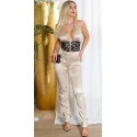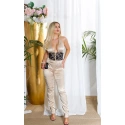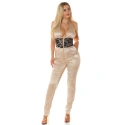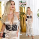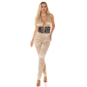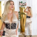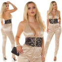 Dámsky sexi overal so širokým pásom. Hlboký výstrih so zipsom.