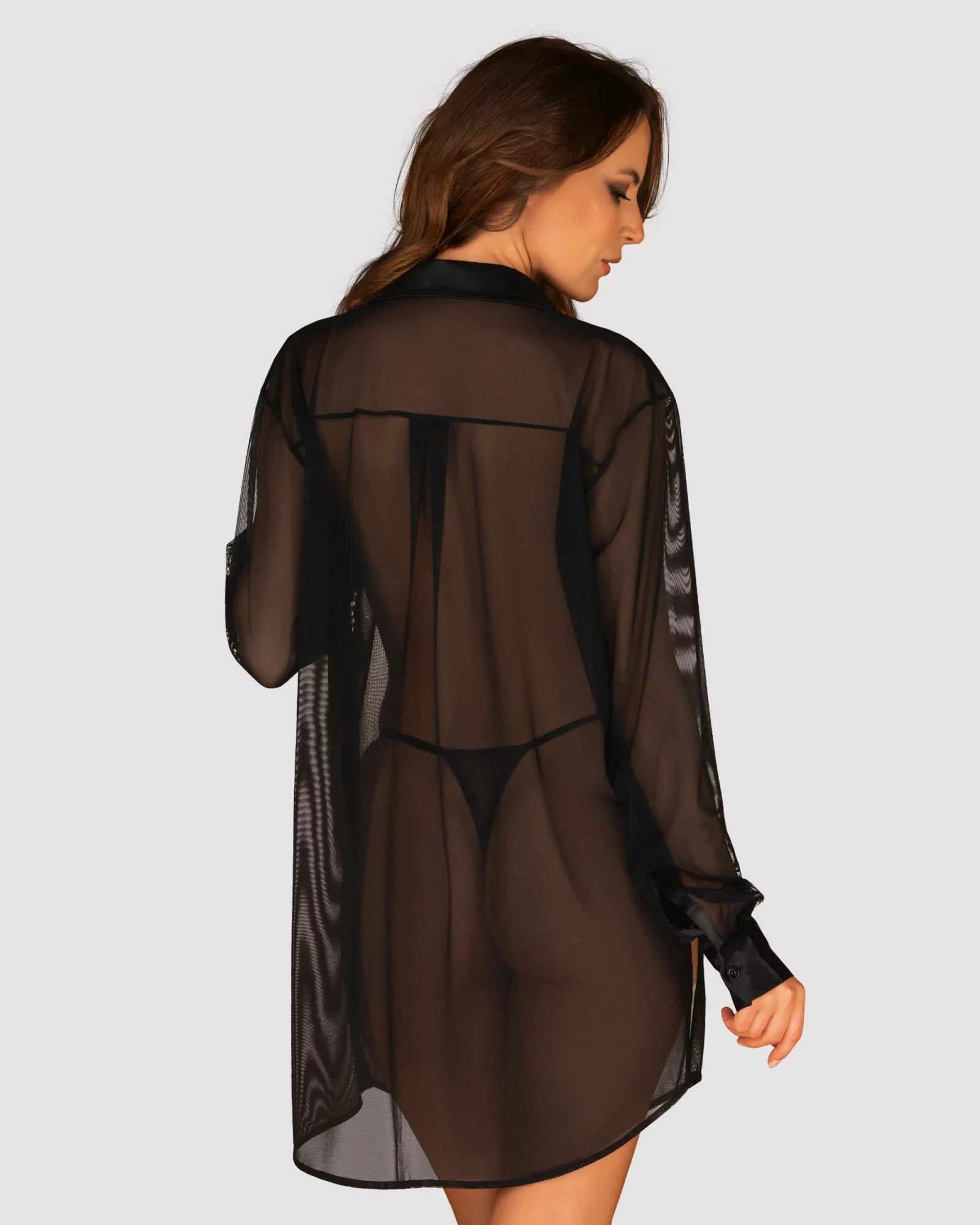 Tento jedinečný model je mimoriadne sexy. Strih mierne siaha pod zadok a jemný priesvitný materiál podnecuje predstavivosť a vyzýva k opojným chvíľam v spálni. Chcete ho skombinovať s džínsami na každodenné nosenie? Bude to fungovať perfektne!
