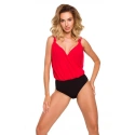Dámske šifónové body. Vrchná časť voľnejšia, vpredu s prekrížením, spodná časť v rozkroku zapínania na štyri patentky.Modelka je 171 cm vysoká a nosí veľkosť S