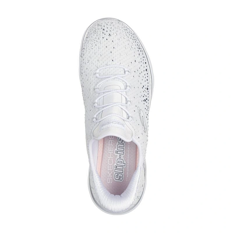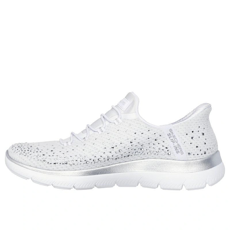 Dodajte si pružinu do kroku s pohodlnými topánkami Skechers Slip-ins®: Summits - Brilliant Shine. Tieto vegánske topánky, navrhnuté s naším exkluzívnym systémom Heel Pillow™, majú zvršok zo sieťoviny zdobený kryštálmi, elastické šnúrky a pohodlnú, odpruženú stielku Skechers Air-Cooled Memory Foam™.