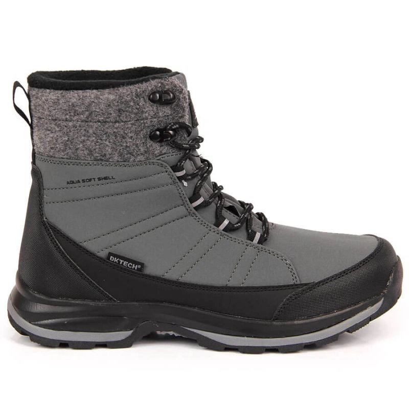 Topánky vyrobené z tkaniny AQUA Softshell, vďaka ktorej sú ľahké, mäkké, pružné a priedušné; majú membránu DKTECH, ktorá zabezpečuje zvýšenú odolnosť proti vode a reguluje vlhkosť, takže čiastočky vody a vietor zvonku ťažko prenikajú
