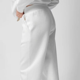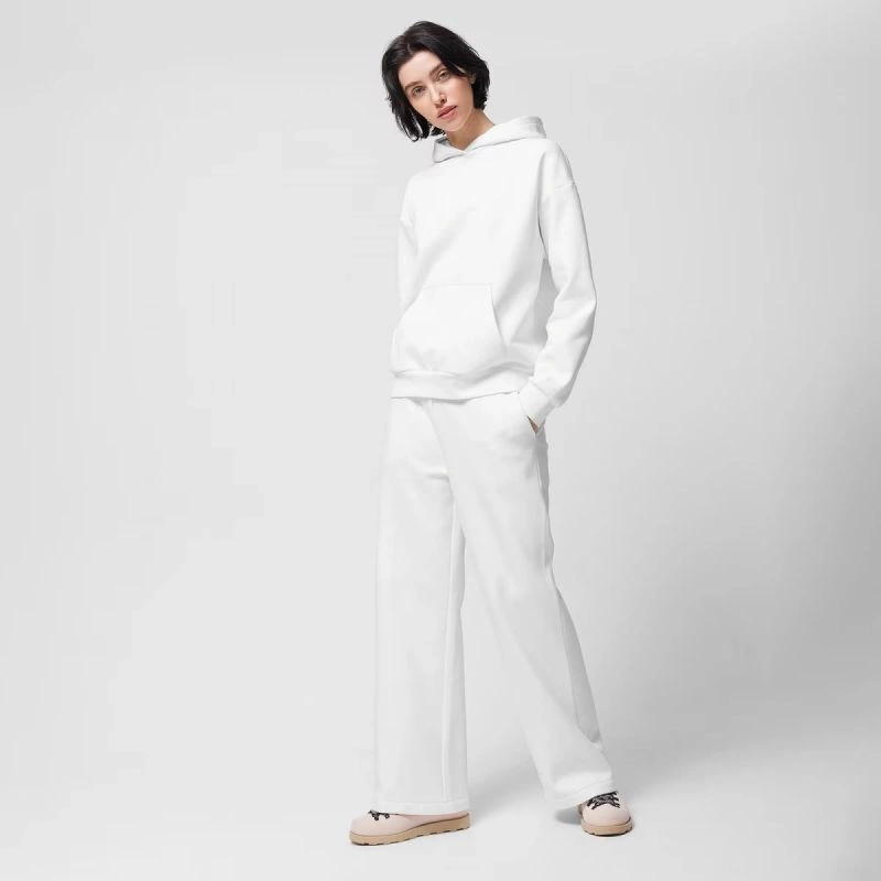 Tieto dámske tepláky majú pravidelný strih a široké nohavice pre pohodlné nosenie.Tkanina je vyrobená z vysokokvalitného úpletu s gramážou 330 g/m², ktorý obsahuje značné množstvo bavlny a polyesteru.Táto jedinečná zmes zaručuje nielen pohodlné nosenie, ale aj vynikajúcu odolnosť, takže nohavice si zachovajú svoj tvar počas mnohých sezón.Vnútorná strana nohavíc je počesaná pre väčšie teplo a je ideálna na chladné dni.Vďaka elastickému pásu a vysokému pásu tieto nohavice poskytujú bezpečné a pohodlné nosenie.Majú dve bočné vrecká pre väčšie pohodlie.Rovné a široké nohavice dopĺňajú štýlový dizajn týchto teplákov.