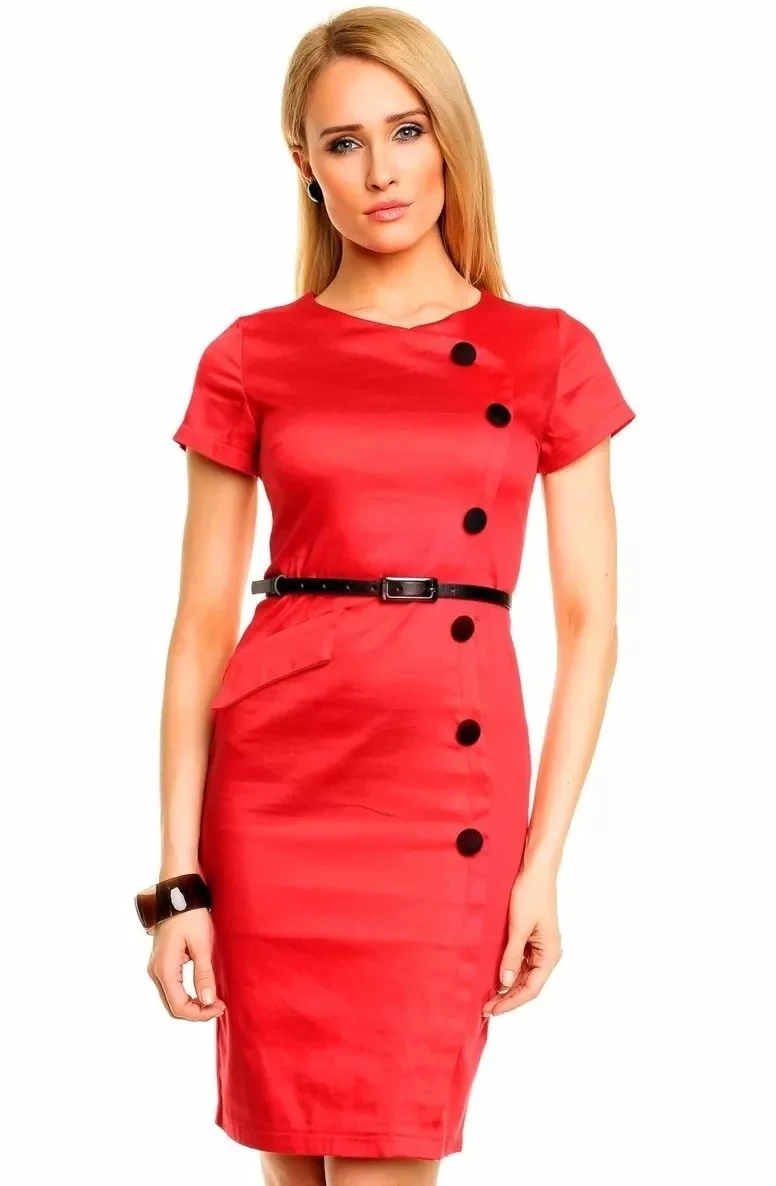 formálne a neformálne šaty - bavlna. Veľmi zaujímavý a atraktívny model šiat MAYAADI. Šaty sú zdobené falošným zapínaním na gombíky v prednej časti a falošným vreckom s chlopňou, ktoré je tiež v prednej časti šiat. Vzadu sa zapínajú na skrytý zips a šaty zdobí aj rozparok na chrbte a úzky čierny opasok.netradičné a zaujímavé bavlnené šaty - vhodné do spoločnosti, na voľný čas alebo do práce.