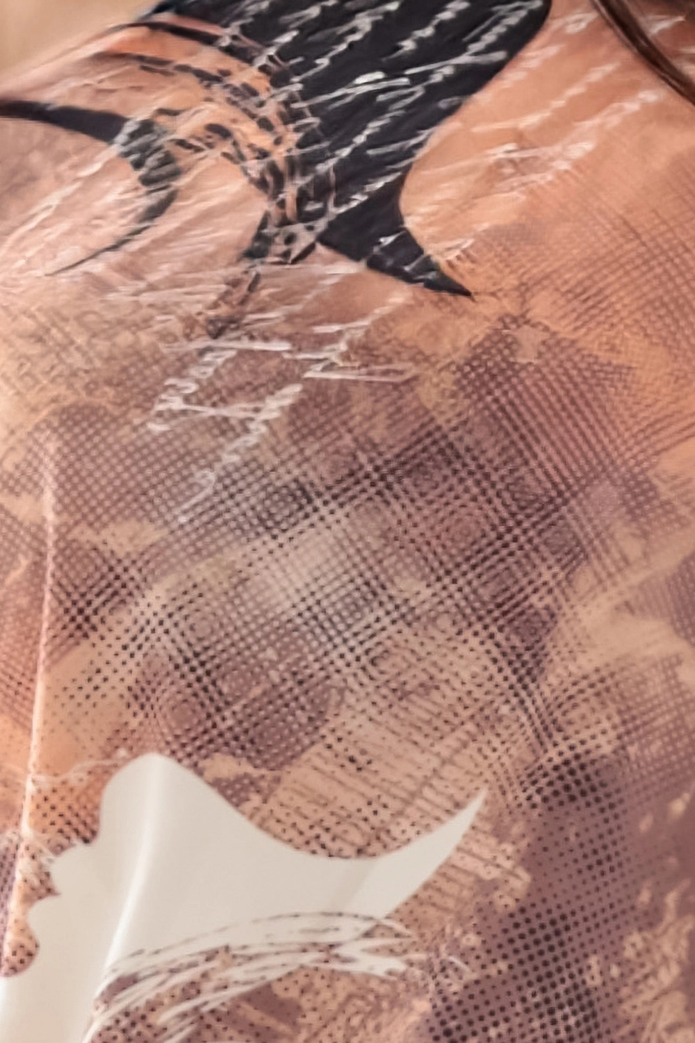Vzor v odtieňoch medenej, béžovej a čiernej dodáva stylingu jedinečný charakter. Lodičkový výstrih sa dá nosiť aj zmyselne spadnutý cez jedno rameno. Model má 3/4 rukávy a praktické vrecká. Ideálne na každodenné stretnutia aj večerné vychádzky.