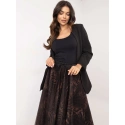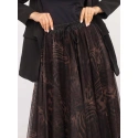 Dlhšia dámska sukňa s elastickým pásom a viazaním na bokoch. Sukňa sa skladá z podšívky a tylovej časti.