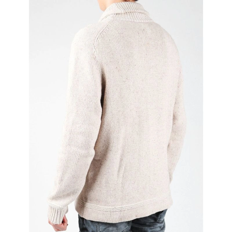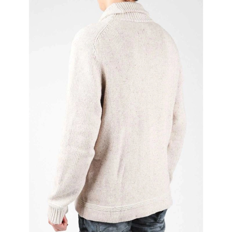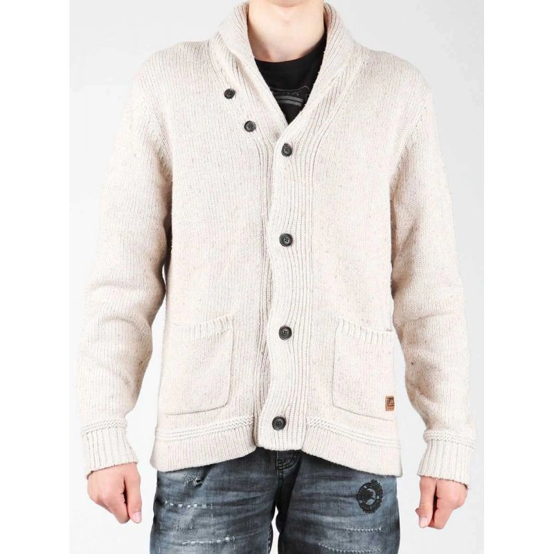 -Pánsky sveter s dlhým rukávom-Zapínanie na gombíky-Vysoký rozprestretý golier-2 vrecká-Farba: biela krieda-Materiál: 79 % bavlna/ 11 % polyester/ 7 % akryl/ 3 % vlna
