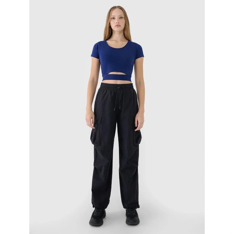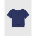 Tričko je vyrobené z 95 % bavlny, vďaka čomu je mäkké, príjemné na dotyk a odolné, zatiaľ čo prídavok 5 % elastanu zabezpečuje pružný a uvoľnený strih. Okrúhly výstrih s miernym rebrovaním a ozdobný výrez na prednej strane pod prsiami dodávajú tričku moderný nádych.