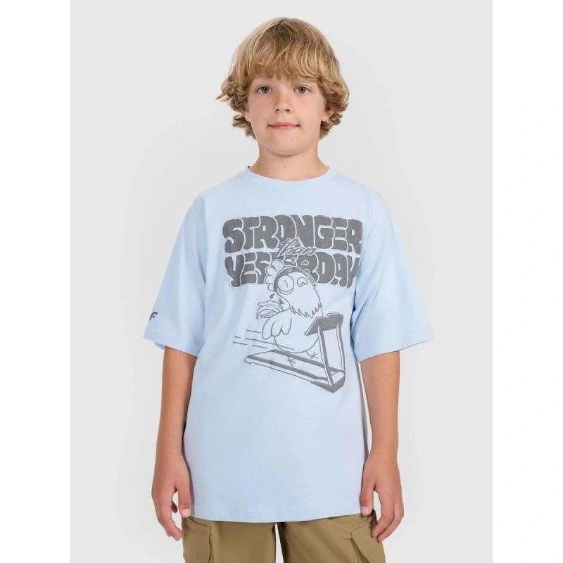Chlapčenské tričko 4F, ktoré v sebe spája pohodlie, jednoduchosť a módny štýl, je vyrobené z ľahkej, priedušnej bavlny pre úplné pohodlie počas každodenných aktivít. Voľný oversize strih poskytuje voľnosť pohybu a dokonale sa hodí k športovému, mladistvému vzhľadu.