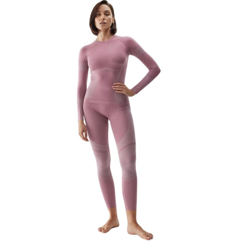 Dámska termo mikina 4F. Elastická, rýchloschnúca tkanina okamžite odvádza vlhkosť smerom von a zaručuje spoľahlivý tepelný komfort. Bezšvový, kompresný strih. Zóny s odlíšenou štruktúrou v oblastiach so zvýšeným potením. Model je ideálny ako prvá vrstva oblečenia.