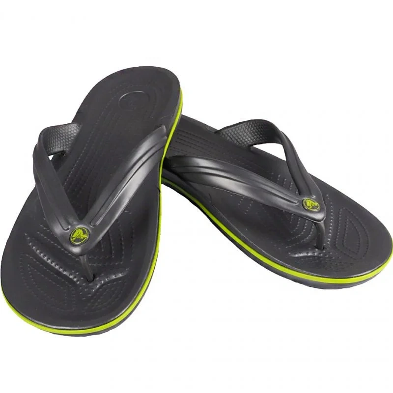 - Žabky Crocs v grafitovej farbe so zelenými prvkami.