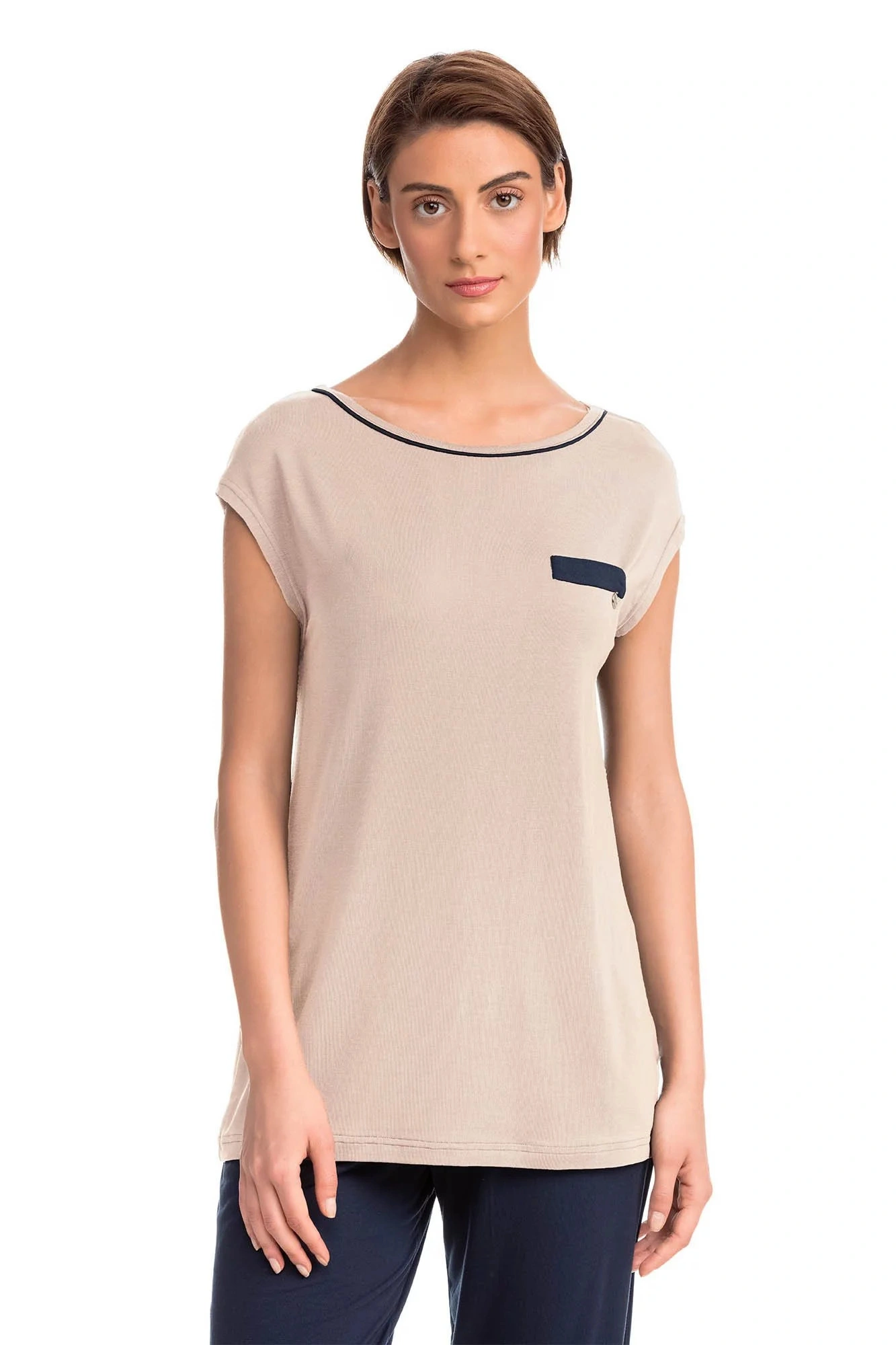Vamp - Krátka dámska nočná košeľa BEIGE SOLEIL S 14191 - Vamp