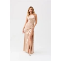 Šaty Inez sú vyrobené z mäkkej, splývavej saténovej tkaniny, ktorá im dodáva elegantný a šik vzhľad. Šaty majú zaujímavý výstrih odhaľujúci jedno rameno vďaka použitiu širokého pásu s riasením. Perfektný strih v páse a dlhá, splývavá sukňa s rozparkom na nohách dokonale zvýrazňujú prednosti siluety. Šaty Inez zaručujú dôstojný a elegantný vzhľad vďaka klasickému strihu obohatenému o originálny výstrih na jedno rameno. Elegantný strih šiat členený odhaleným ramenom a sexi rozparkom na nohách priťahuje pozornosť a zvýrazňuje siluetu. Šaty sú ideálne na špeciálne príležitosti, ako sú svadby, recepcie, plesy a firemné podujatia.