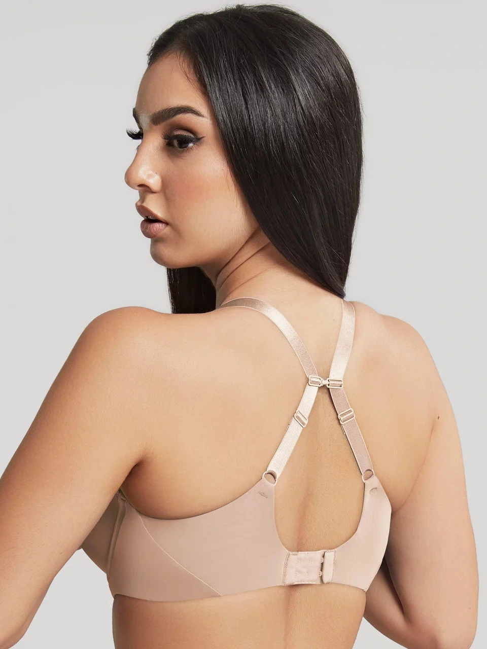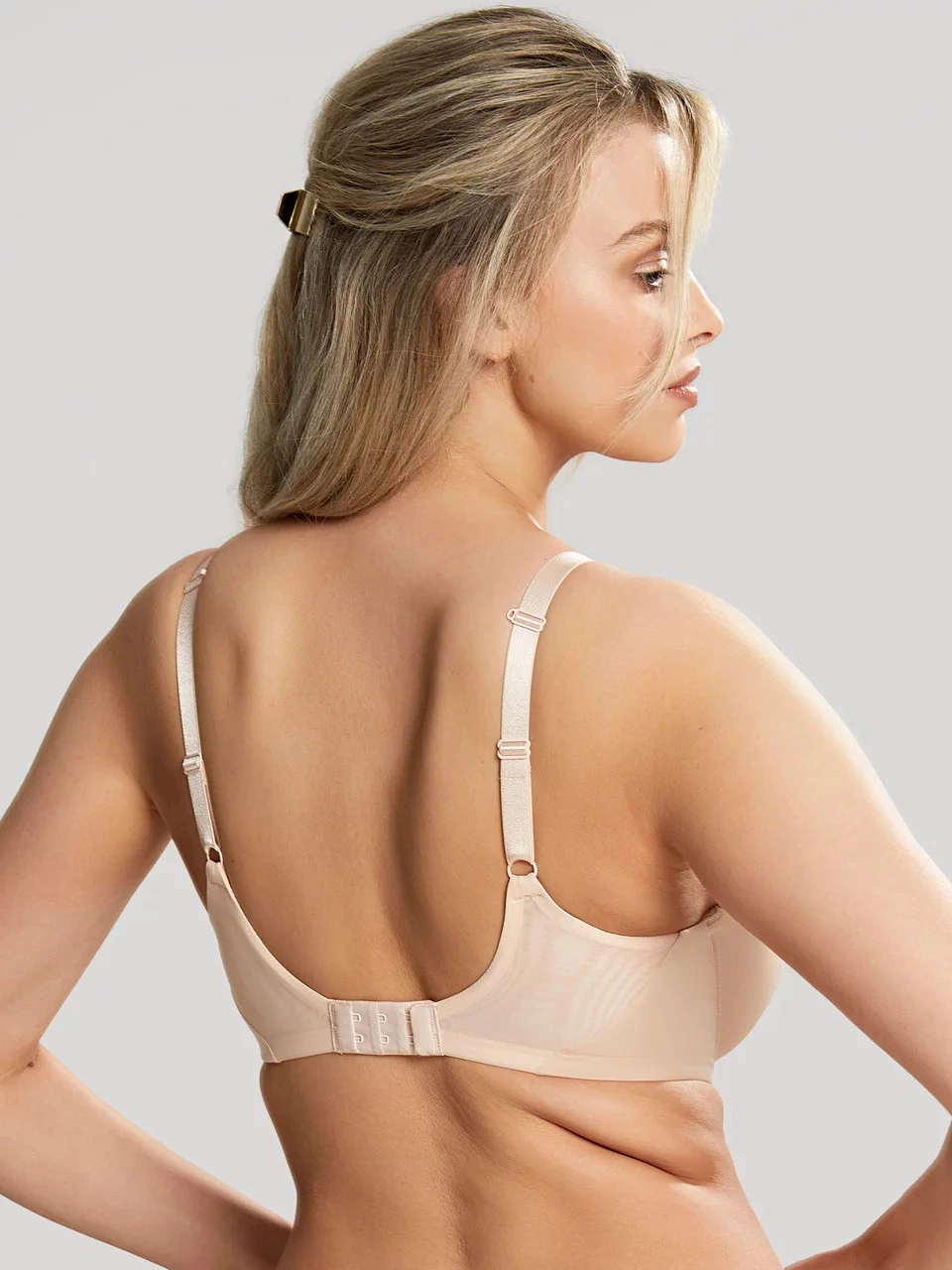 Dámska podprsenka s kosticami, posuvnými ramienkami a zapínaním na dva háčiky na chrbte.