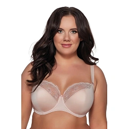 Hladká, elegantná podprsenka s polopriepustnými košíčkami, košíčky sú vystužené mäkkou penou, ktorá podopiera a zdvíha poprsie a elegantne ho tvaruje v dekolte. Stabilná kvetinová čipka zdobiaca horné časti košíčkov koketne zakrýva hornú časť pŕs a to, čo je skryté, necháva na predstavivosť. Vďaka rafinovanej konštrukcii podprsenka pevne drží na svojom mieste a široký obvod a ramienka zaisťujú najvyššie pohodlie.