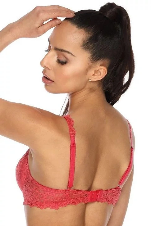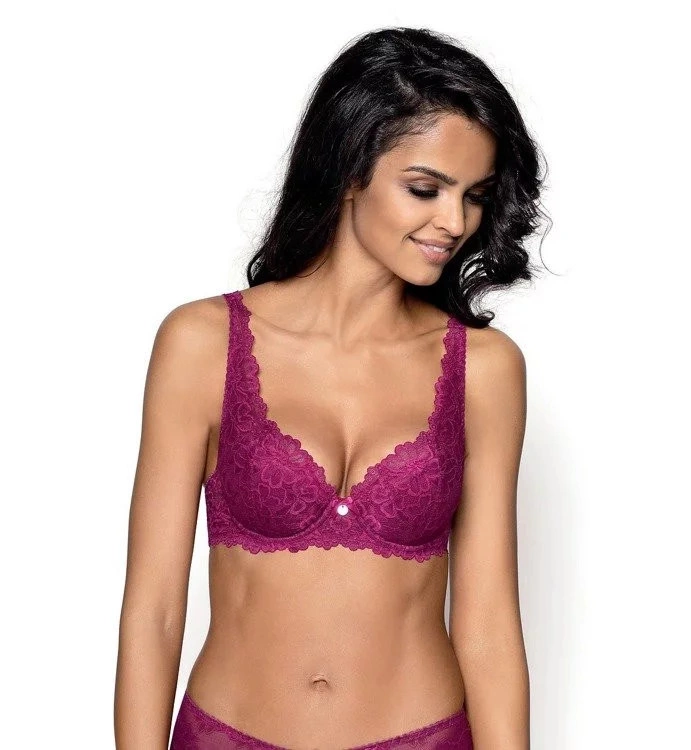 Vystužená dámska podprsenka, ktorá je vyrobená z efektnej čipky. Vnútorná strana košíčkov je podšitá