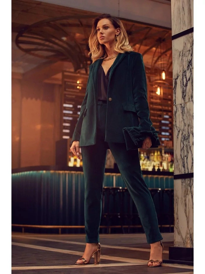 Hladké elastické zamatové nohavice na báze bavlny sú rovnako jedinečné ako outfity, ktoré s nimi môžete vytvoriť.INFORMÁCIE O VÝROBKU: Úpletová zamatová tkanina rovné nohavice s bočnými rozparky skryté zapínanie na zips a háčik vpredu bez podšívky Naša modelka je vysoká 171 cm a nosí veľkosť S