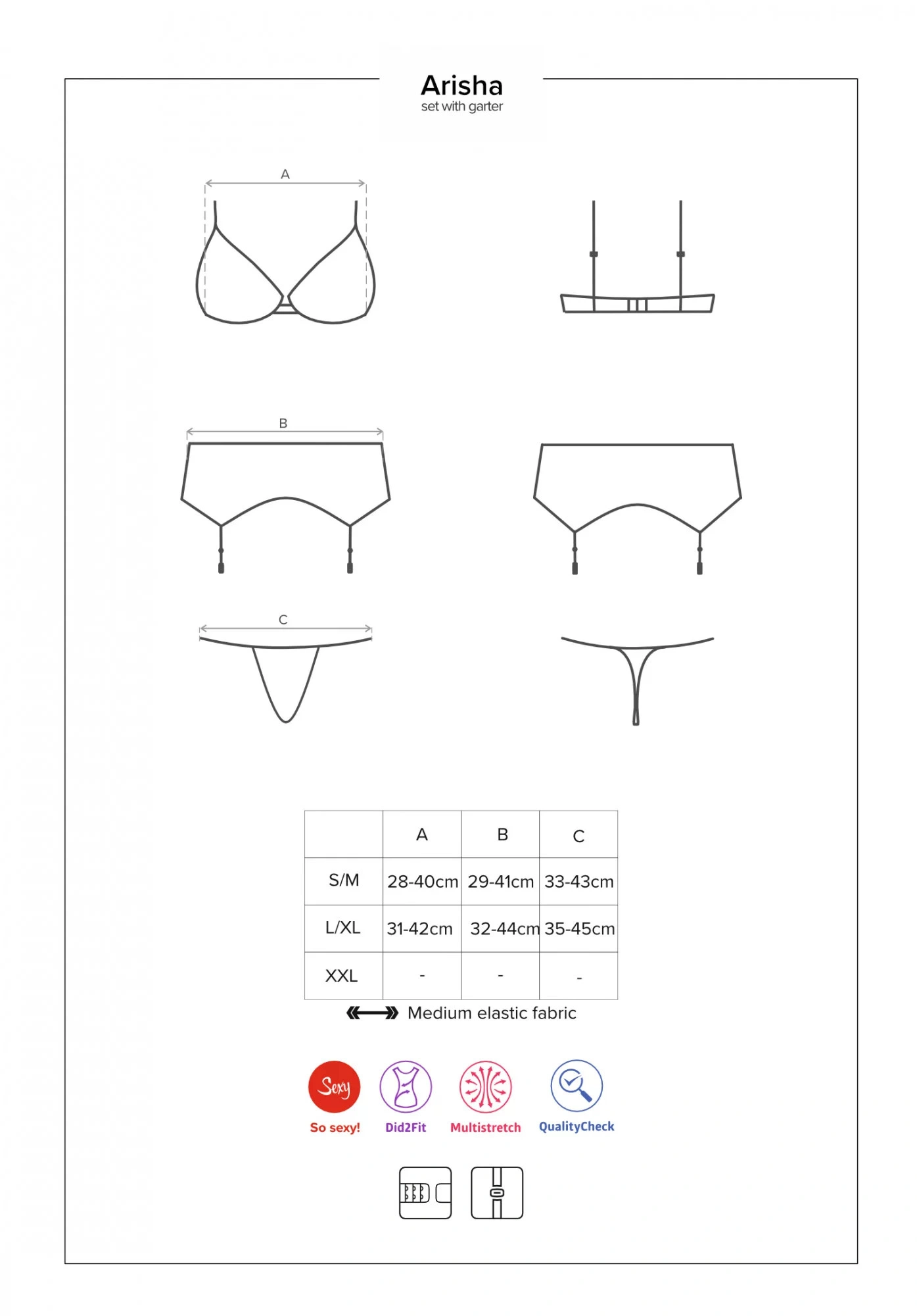 Zmyselný set Arisha set with garter belt - Obsessive