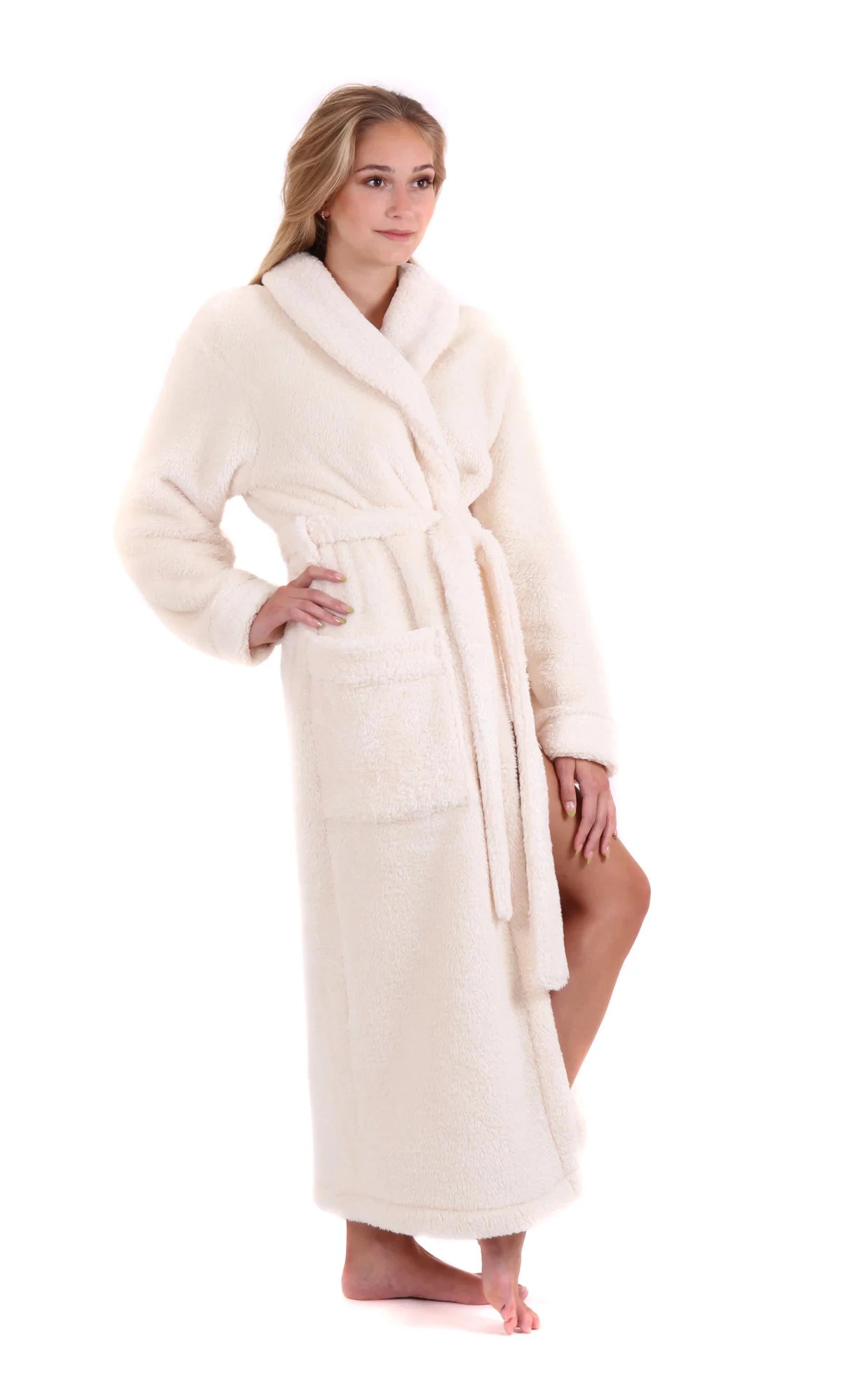 Najteplejší župan z tohtoročnej kolekcie sa volá ALTA. Alta vás zahreje aj za polárnym kruhom. Vnútorná strana je nádherne mäkká šerpa - jahňacia koža a vonkajšia strana je mäkký wellsoft s dlhým vlasom. Materiál má úžasne jemný pocit, veľký objem a je veľmi hrejivý. Vyrábame ho v krémovej, dymovo sivej, bezovej a ľadovo modrej farbe. Unisex pohodlný strih v klasickej dĺžke má veľký šálový golier, do ktorého sa môžete zachumlať.