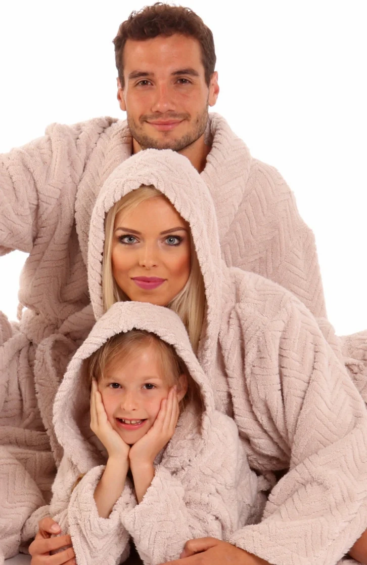 Dlhý, hrejivý župan so šálovým golierom. Elastický pás Hrebienkovaný vzor Zloženie materiálu: 100% m