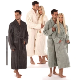 Dlhý, hrejivý župan so šálovým golierom. 100% mikro bavlna (froté), 500 g/m2