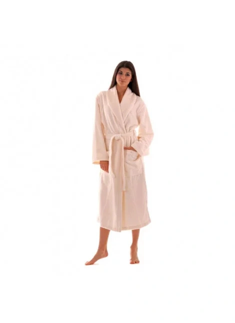 Dlhý, pohodlný župan so šálovým golierom. Je vyrobená z príjemného velúru. Má vrecká, zaväzuje sa v